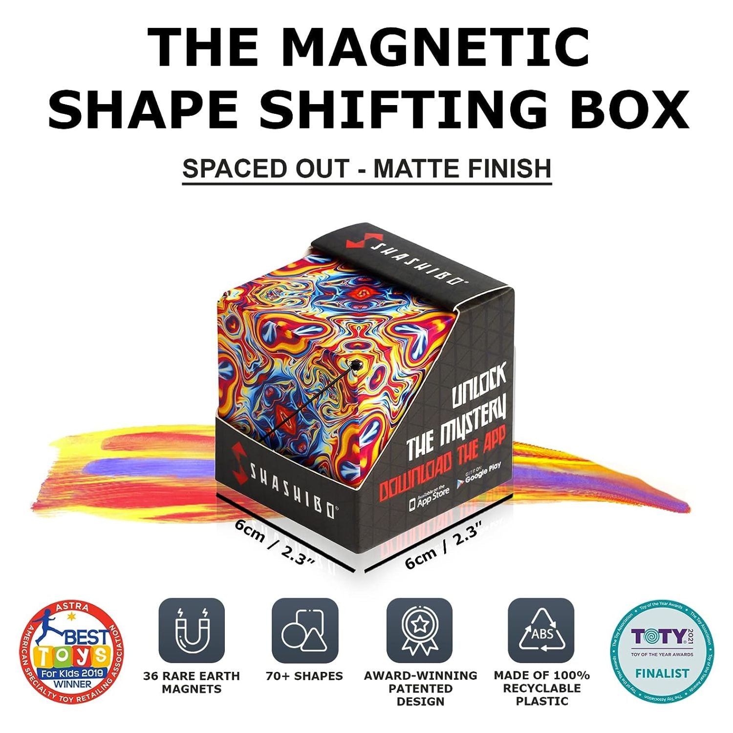 '''ð§© UNLIKE OTHER PUZZLE BOX TOYS that turn out DISAPPOINTING & DULL, the patented, AWARD-WINNING Shashibo Sensory box features 36 RARE EARTH MAGNETS for an INNOVATIVE design that transforms into OVER 70 SHAPES. Fits comfortably in the hand for hours of MIND-CHALLENGING fun, STIMULATE the senses with UNLIMITED creative possibility! CAN YOU MASTER THE SHAPE-SHIFTING BOX?''''ð§ NOTHING COMPARES to the QUALITY & UNIQUE DESIGN of the Shashibo, durably constructed of PREMIUM injection-mold plastic, 36 RARE EARTH MAGNETS, and a TEAR-PROOF, matte or high-gloss surface. Each magnetic puzzle features 4 UNIQUE, ARTISTIC PATTERNS of vibrant, MESMERIZING ARTWORK, for an ever-changing array of BEAUTY AT YOUR FINGERTIPS.''''ð§² COLLECT & CONNECT â With the strong internal magnet system of our Sensory puzzle boxes, you can CONNECT MULTIPLE MAGNETIC CUBES to build even larger structures and SCULPTURES â for the ultimate SATISFYING magnetic Sensory toy and brain teaser. Collect all 9 DESIGNS to create vibrantly patterned, spellbinding 3D ART!''''ð A TRANSFORMATIONAL GIFT â Our Sensory magnet cubes make great SENSORY STIMULATION puzzle gifts and STEAM & STEM toy gifts for all ages. With every satisfying click, our shape shifting puzzle box âs CALMING, THERAPEUTIC effect soothes away stress & nerves. Try our Gift BOX SET of 4: the ultimate Sensory toy set for loved ones to build killer EXTENDED STRUCTURES!''''⨠AT FUN IN MOTION TOYS, WE CREATE toys that STIMULATE the MIND, BODY & IMAGINATION. Designed in the U.S. and Germany, our award-winning magnet cube is made to challenge the senses and build SKILL & COORDINATION and BRING PEOPLE TOGETHER for hours of fun. Your happiness is our #1 goal! If you need any help with your Shashibo transforming cube, our Happiness Engineers are STANDING BY. Click our Storefront to see our ENTIRE RANGE OF TOYS.'''